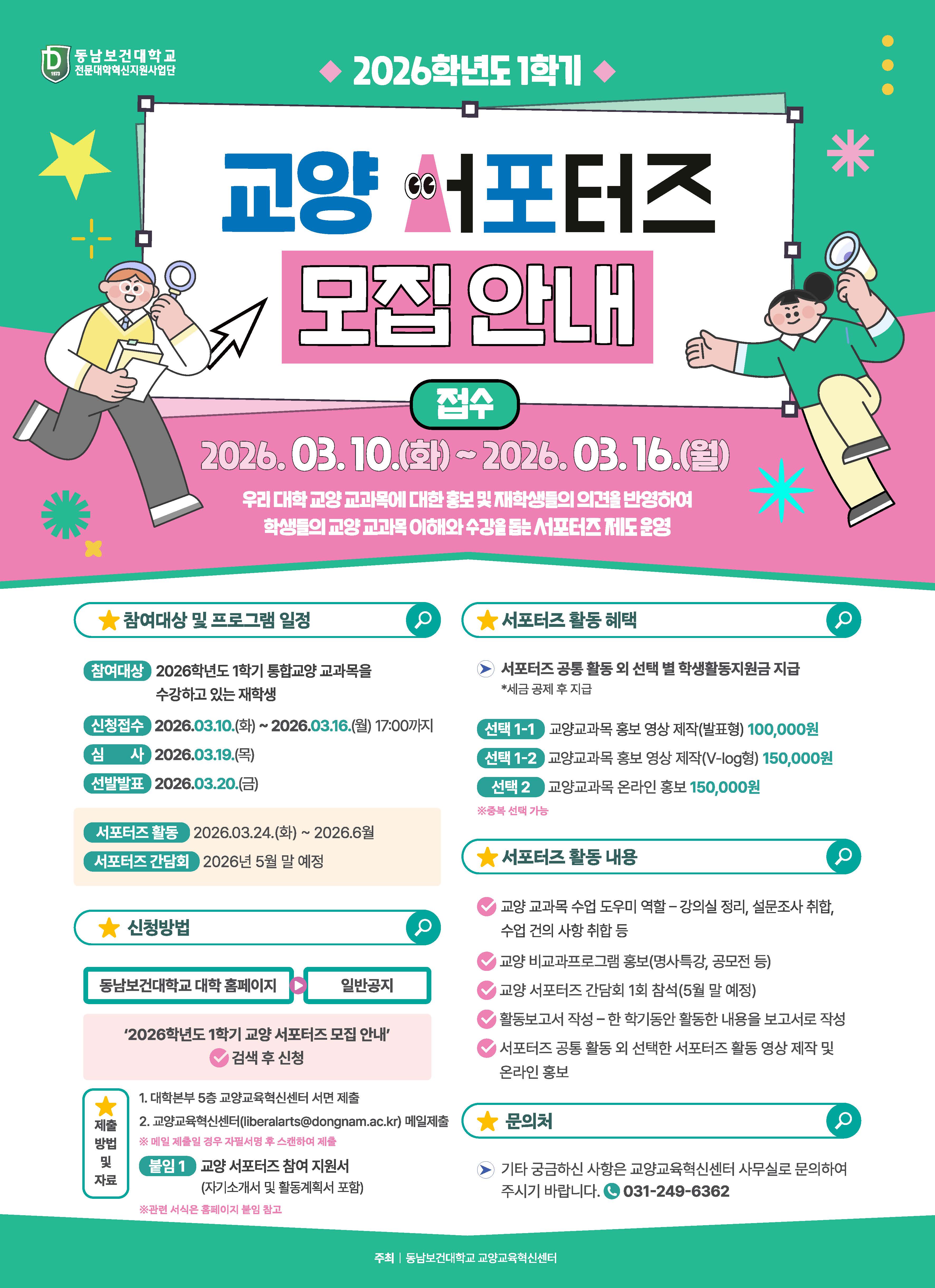 2026학년도 1학기 교양 서포터즈 모집 안내
