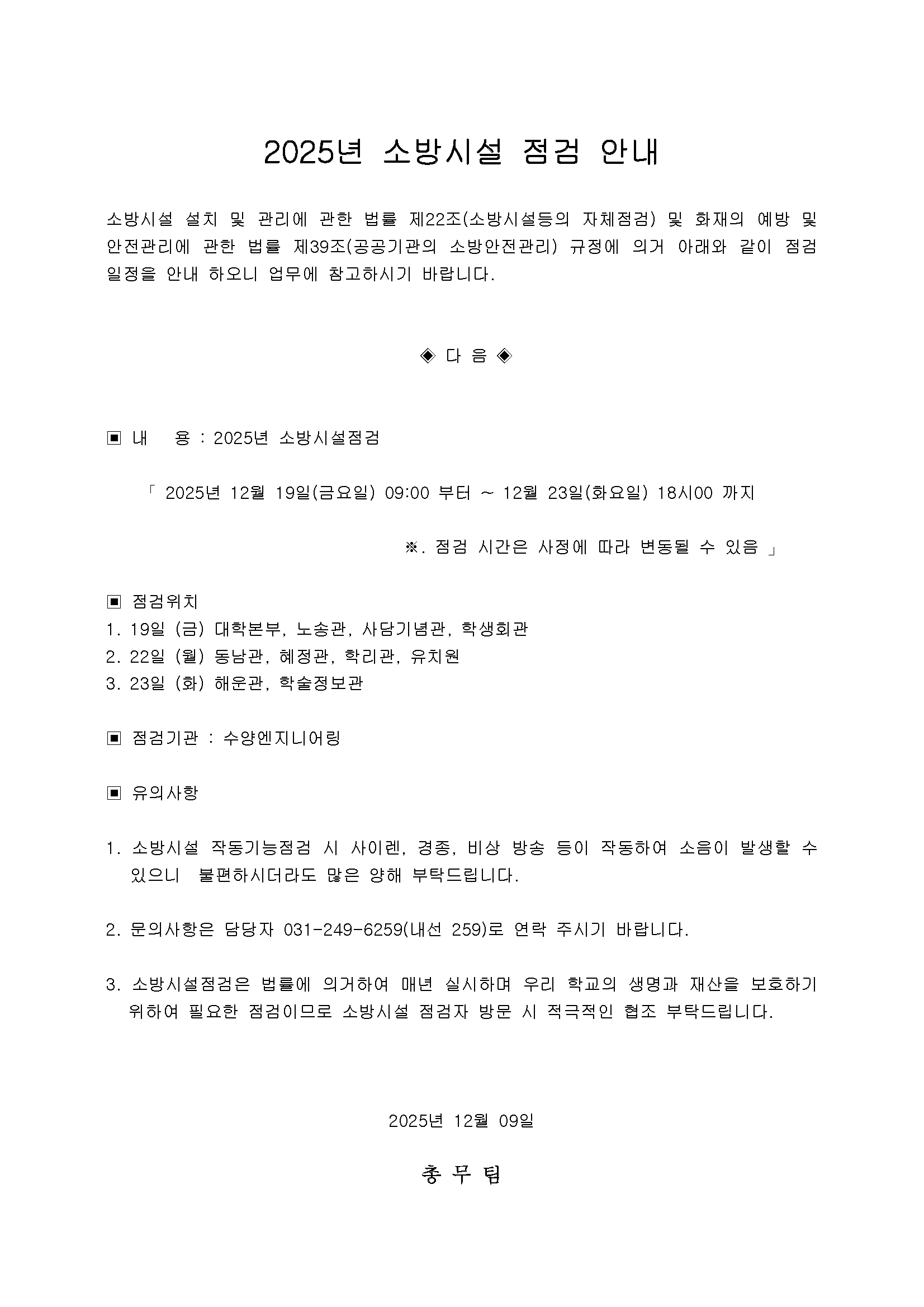 [총무팀] 2025년 하반기 소방시설 점검 안내
