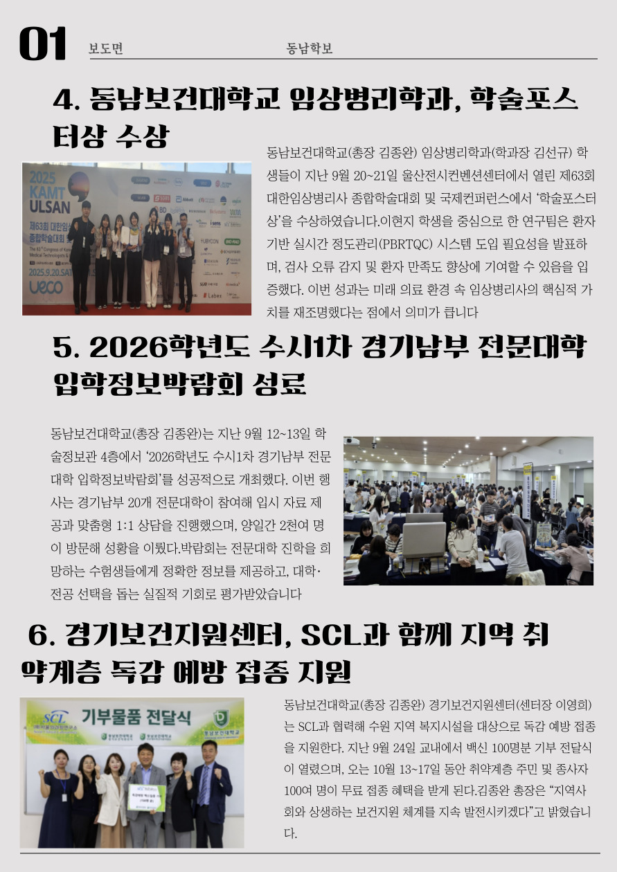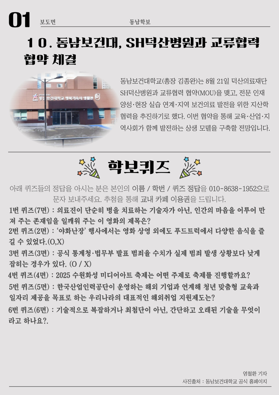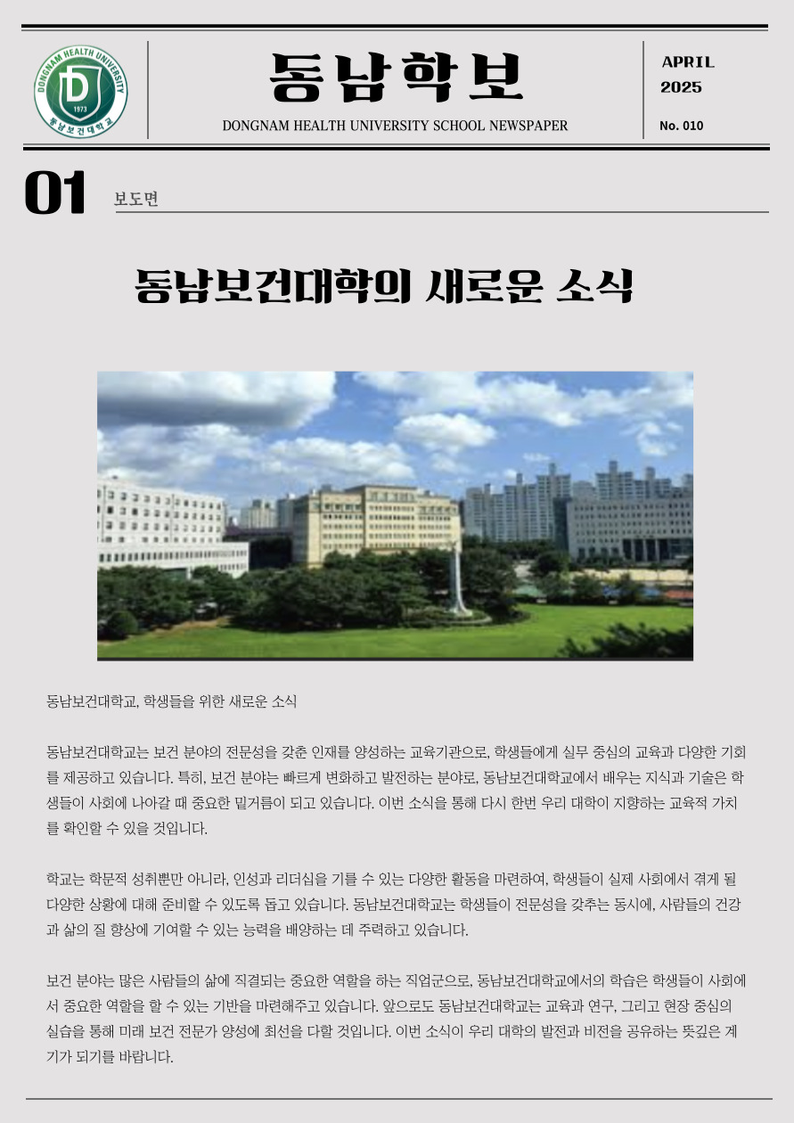 동남학보 12호 1면 [보도면] 우리학교의 새로운 소식들